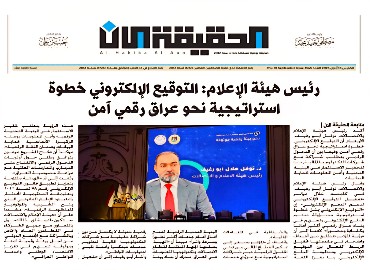 صحيفة الحقيقة الان .. رئيس هيأة الاعلام : التوقيع الالكتروني خطوة استراتيجية نحو عراق رقمي امن