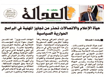 صحيفة العدالة .. هيأة الاعلام والاتصالات تحذر من تجاوز المهنية في البرامج الحوارية السياسية