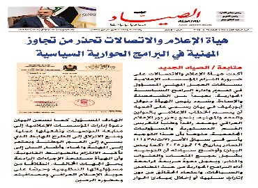 صحيفة الصياد .. هيأة الاعلام والاتصالات تحذر من تجاوز المهنية في البرامج الحوارية السياسية