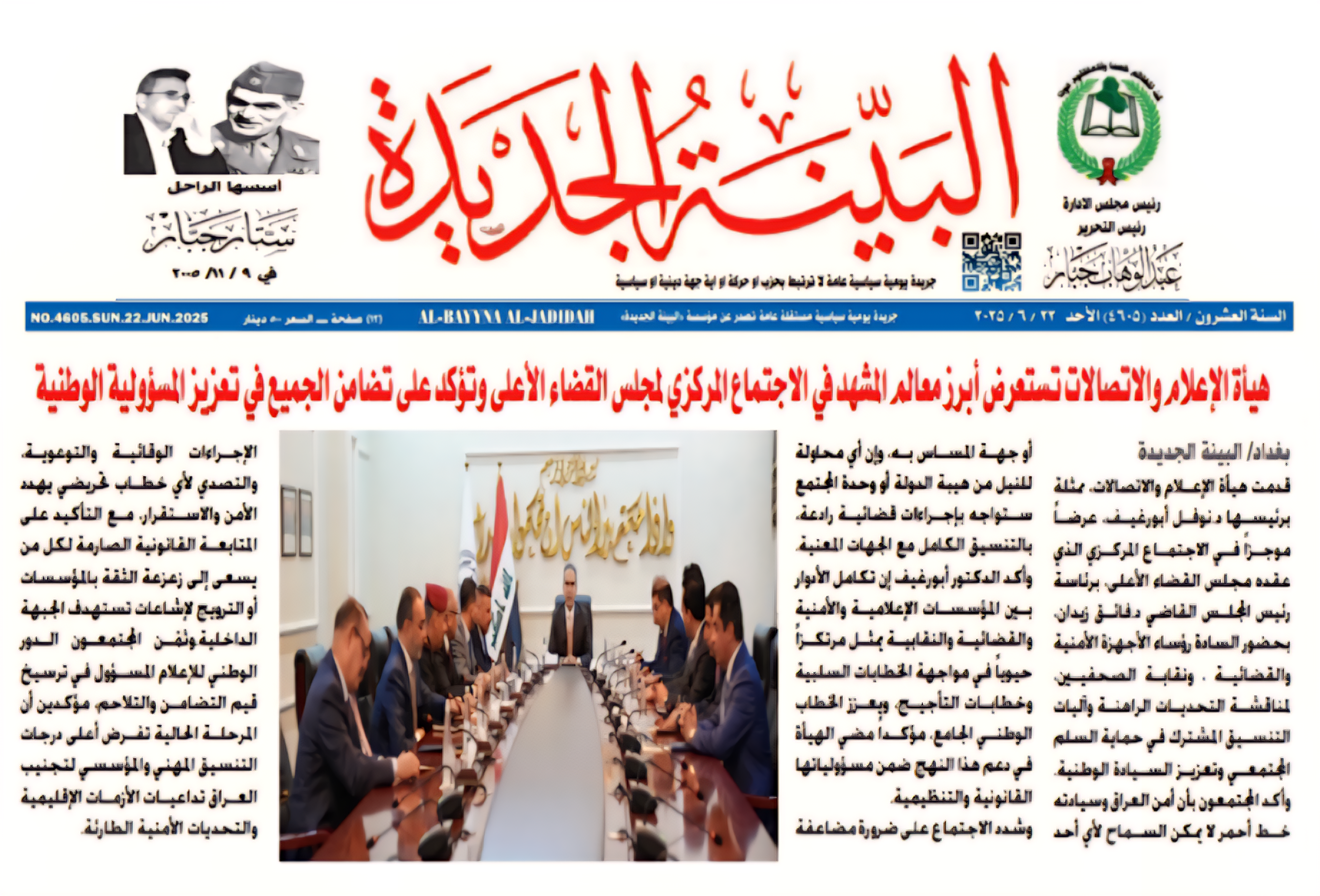 صحيفة البينة الجديدة .. هيأة الاعلام والاتصالات تستعرض ابرز معالم المشهد في الاجتماع المركزي لمجلس القضاء الاعلى