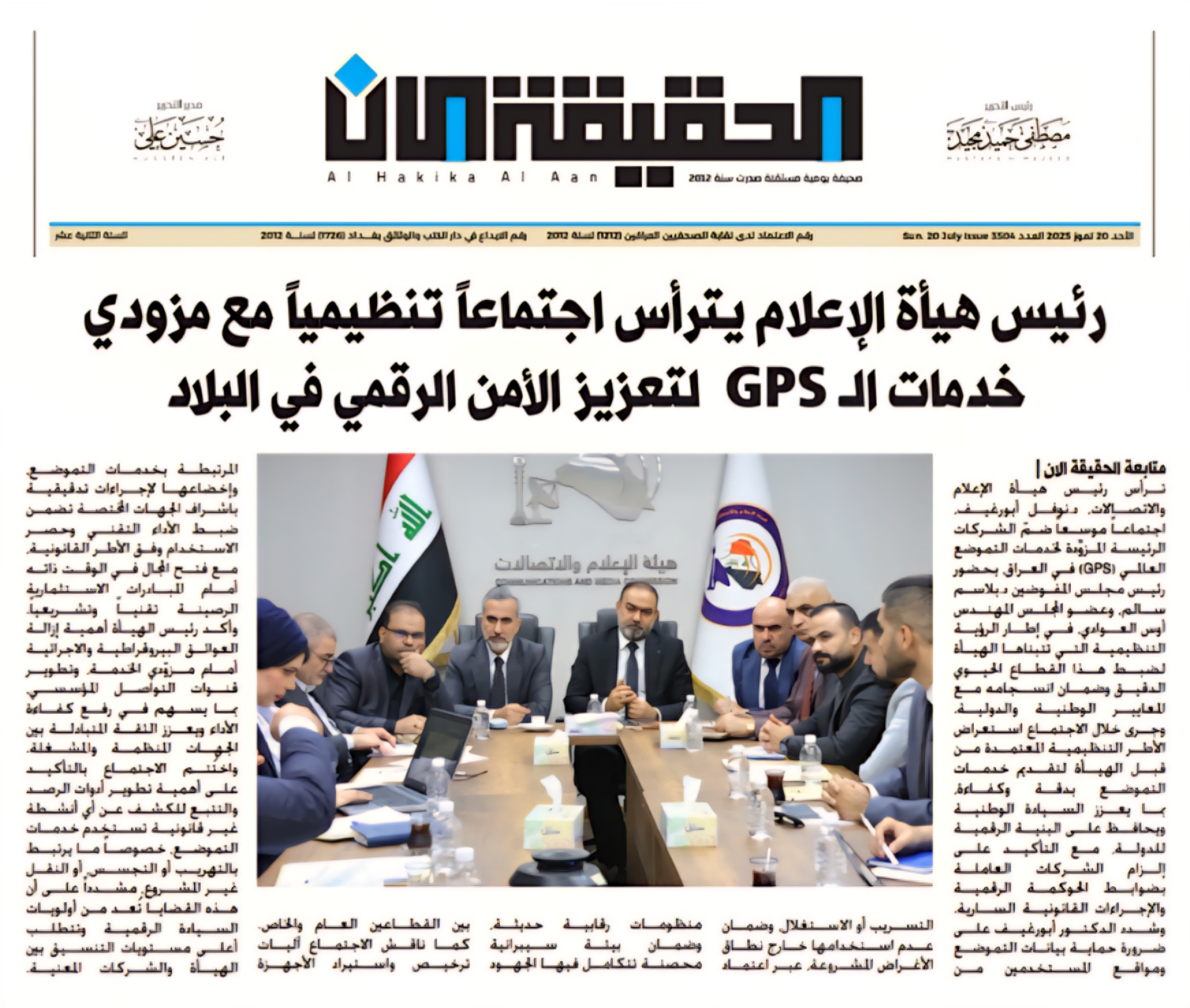 صحيفة الحقيقة الان .. رئيس هيأة الاعلام يترأس اجتماعا تنظيميا مع مزودي خدمات GPS لتعزيز الامن الرقمي بالبلاد