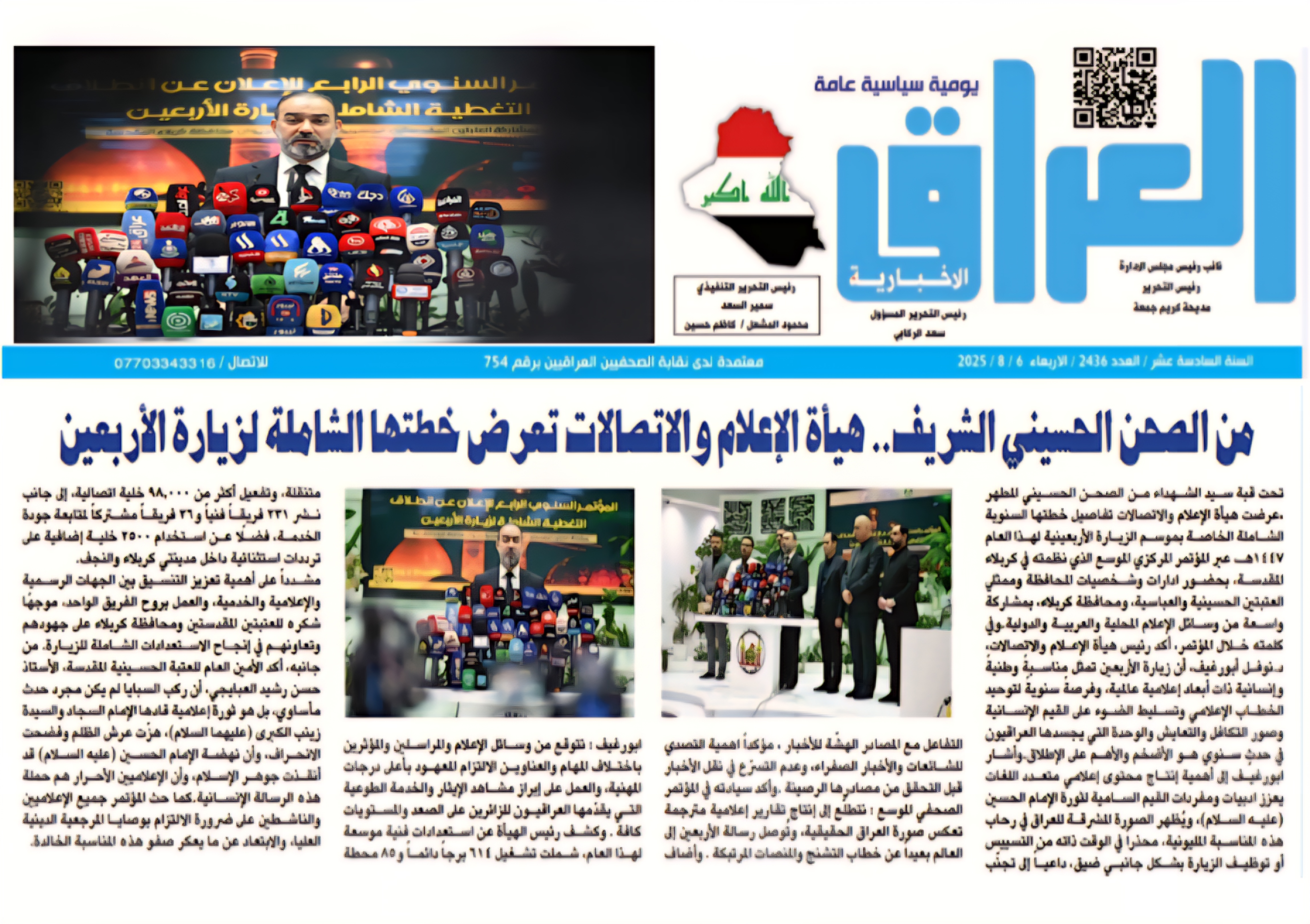 صحيفة العراق الاخبارية .. من الصحن الحسيني الشريف هيأة الاعلام والاتصالات تعرض خطتها الشاملة لزيارة الاربعين
