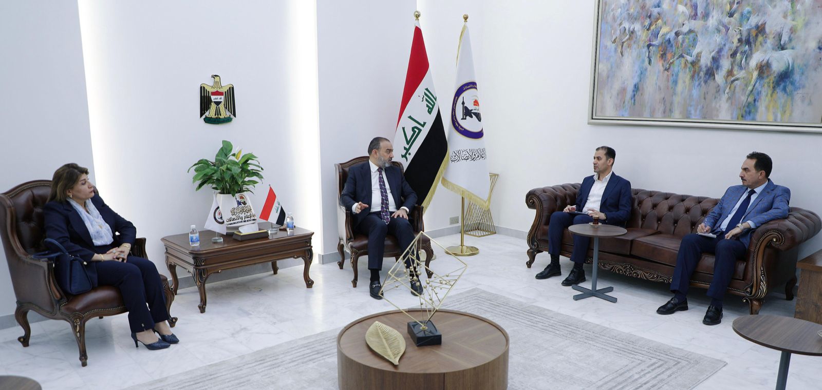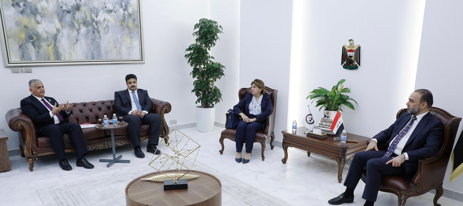 استقبل رئيس هيأة الإعلام والاتصالات، د.نوفل أبورغيف، في مقر الهيأة ببغداد، نائب رئيس مجلس أمناء شبكة الإعلام العراقي، السيدة سناء سعيد، يرافقها أعضاء اللجنة الدائمة لتطبيق سياسة إعلام الأقليات، في إطار التعاون المؤسسي والمهام المشتركة.