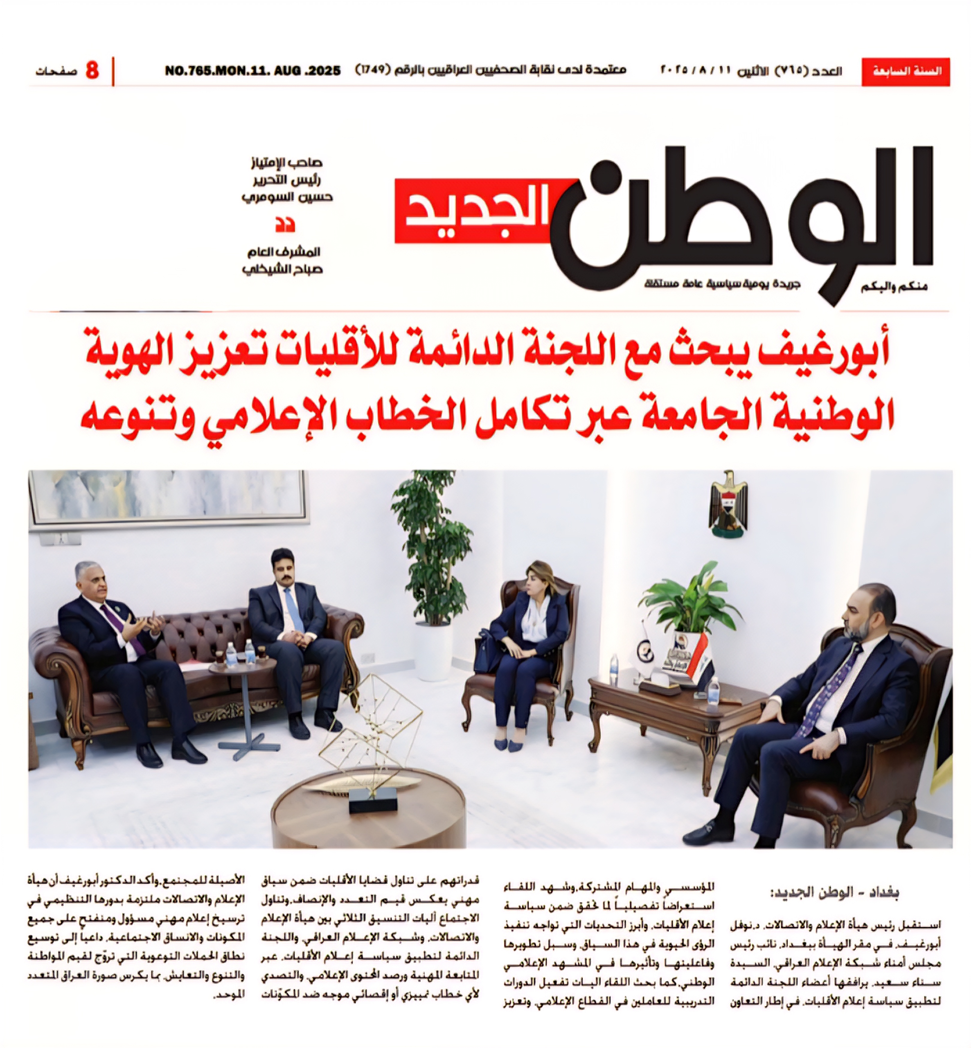 صحيفة الوطن .. ابورغيف يبحث مع اللجنة الدائمة للأقليات تعزيز الهوية الوطنية الجامعة