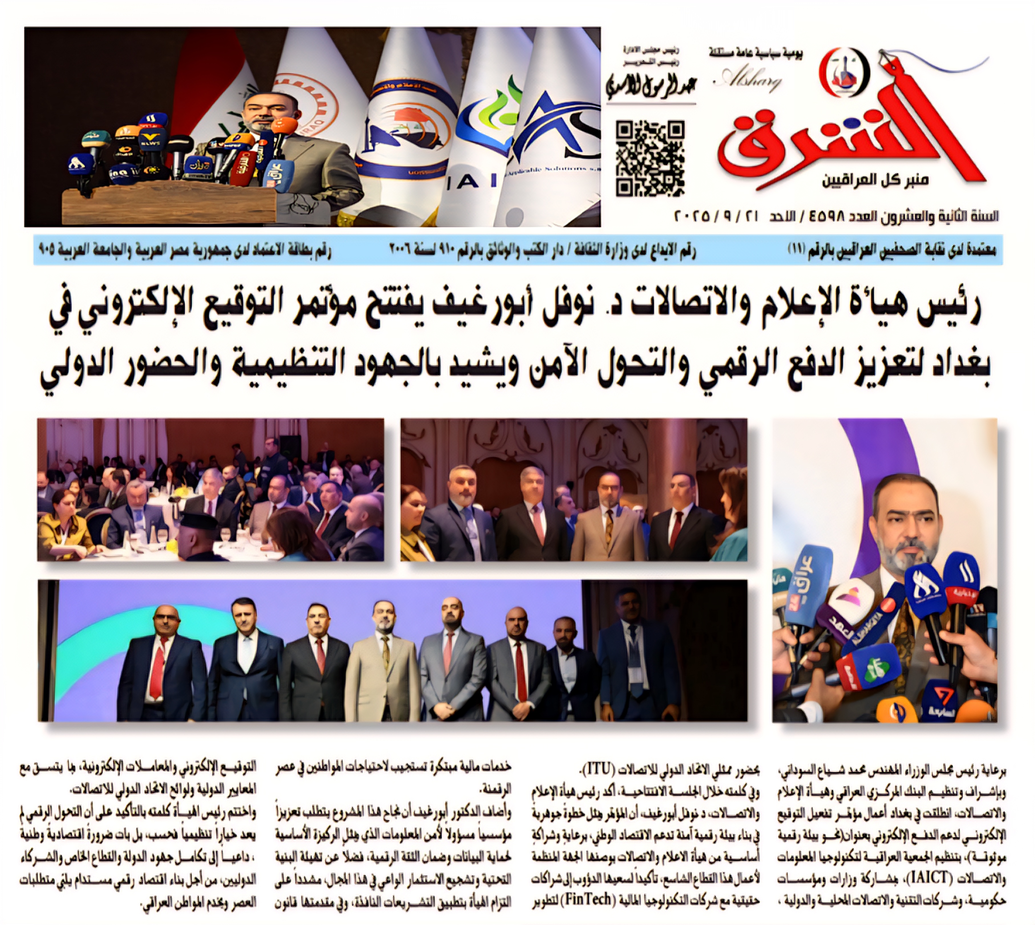 صحيفة الشرق .. رئيس هيأة الاعلام والاتصالات يفتتح مؤتمر التوقيع الالكتروني في بغداد