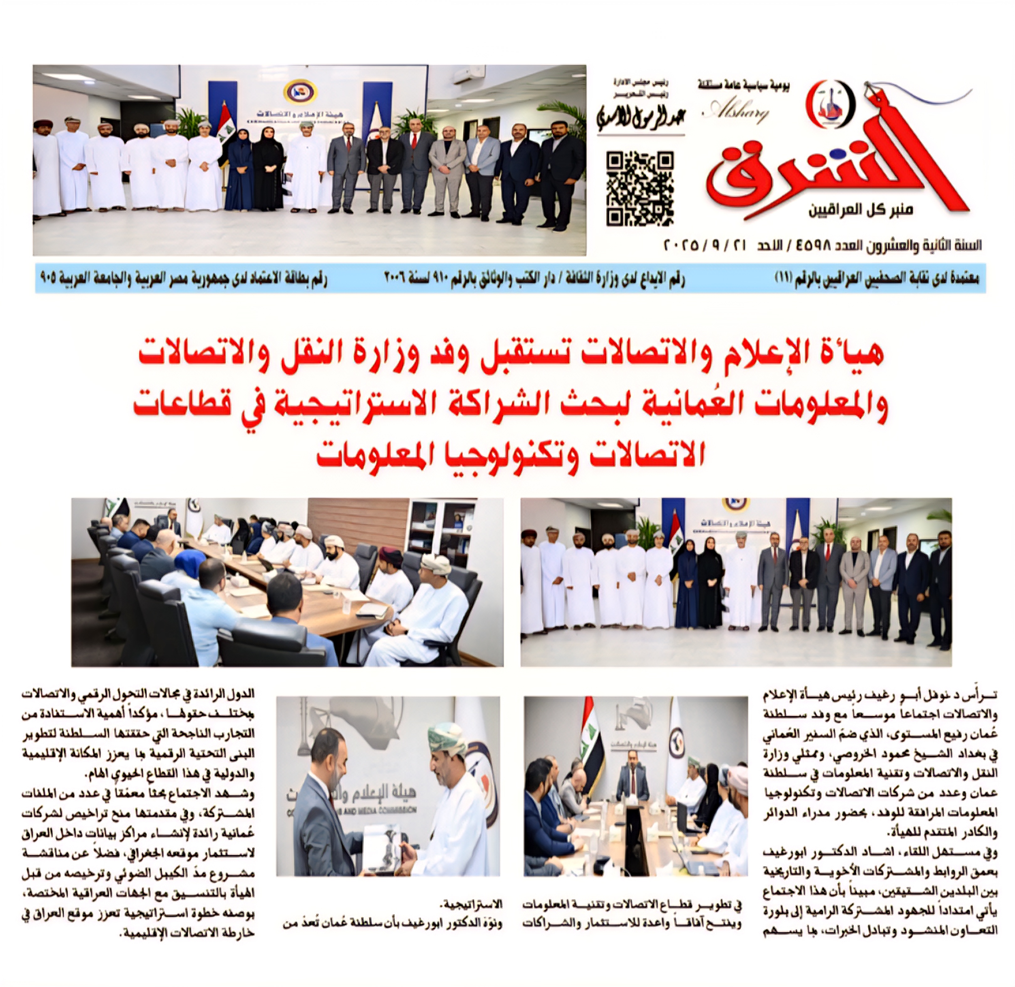 صحيفة الشرق .. هيأة الاعلام والاتصالات تستقبل وفد وزارة النقل والاتصالات والمعلومات العمانية