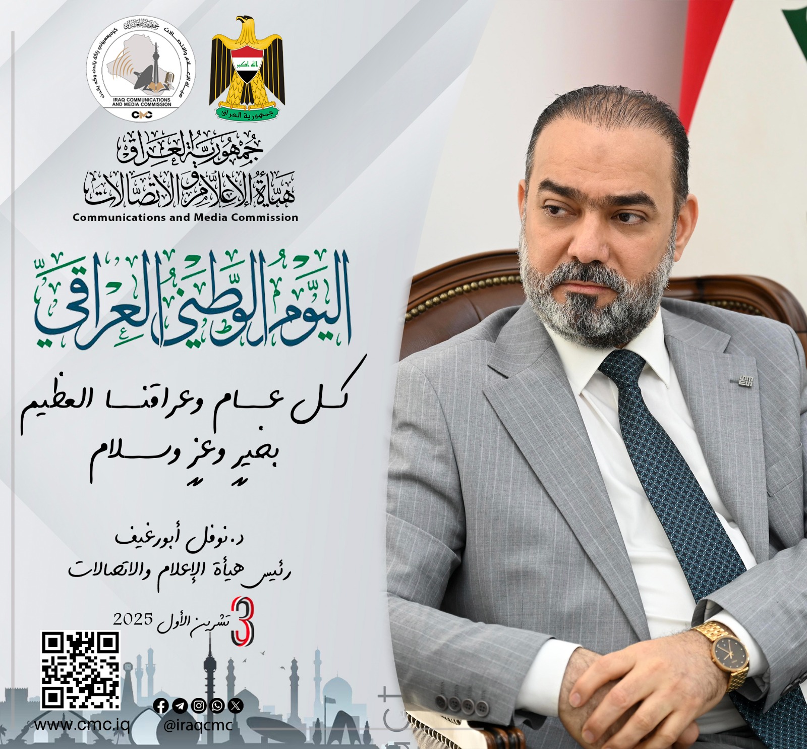 رئيس هيأة الاعلام والاتصالات يهنئ العراقيين بمناسبة اليوم الوطني