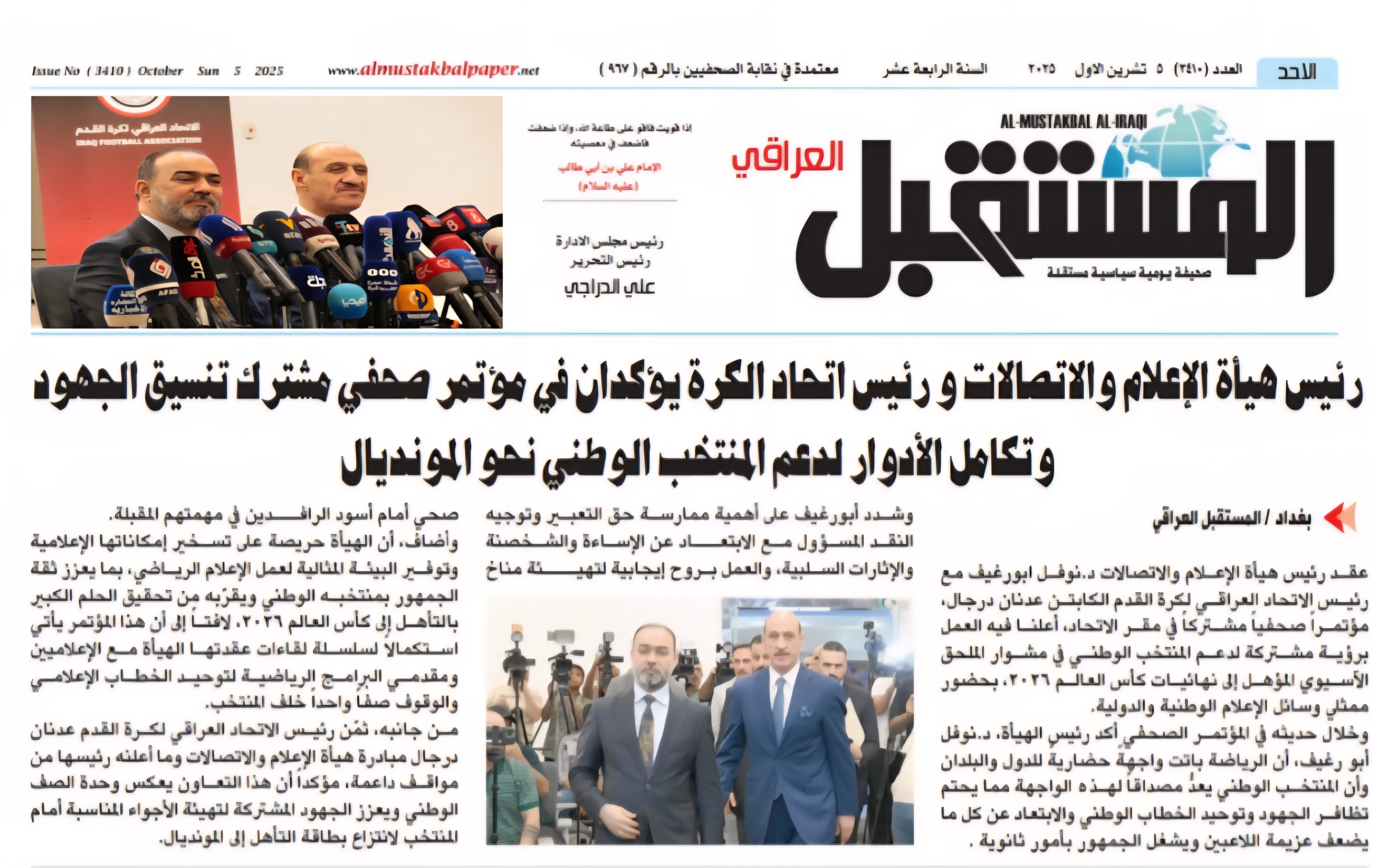 صحيفة المستقبل .. هيأة الاعلام والاتصالات واتحاد الكرة يؤكدان دعمهم للمنتخب الوطني