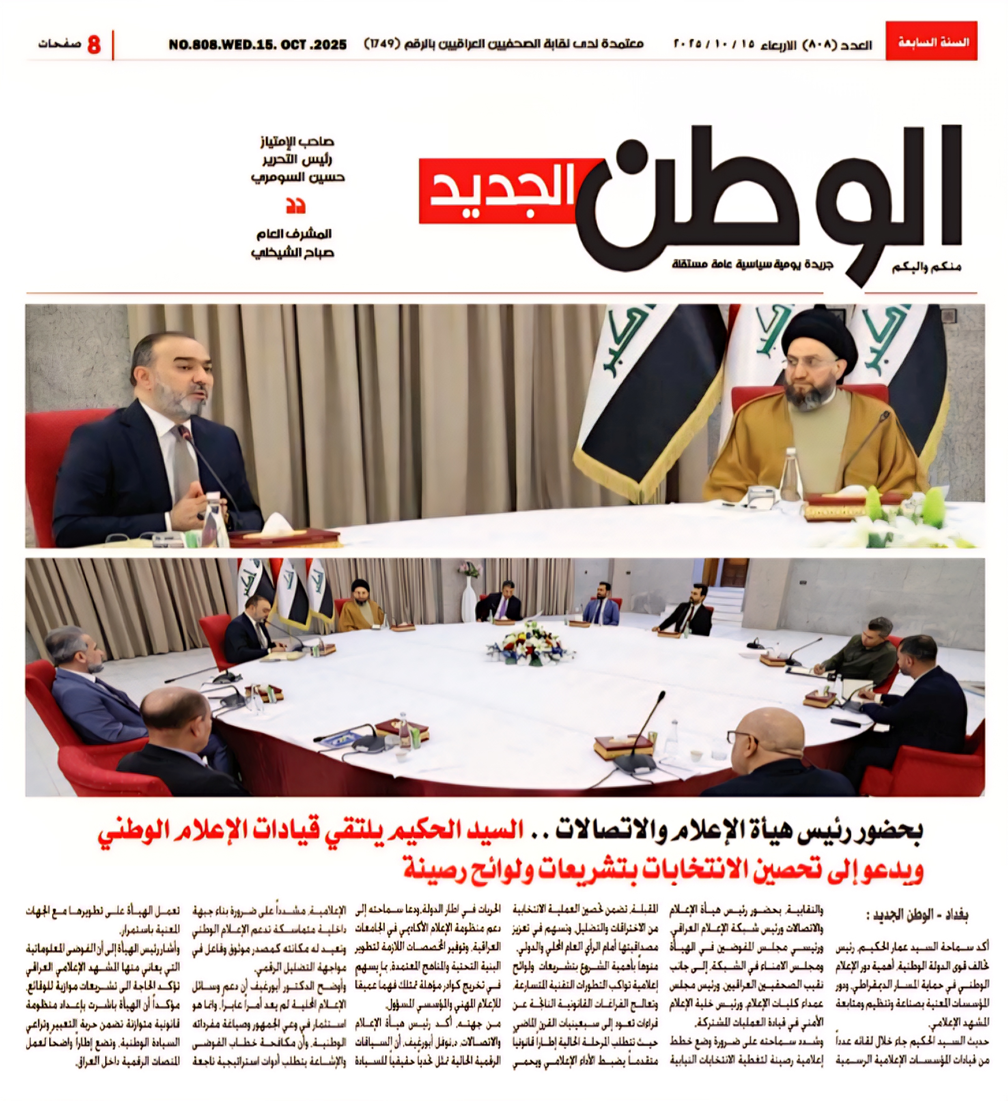 صحيفة العراق الاخبارية .. السيد الحكيم يجتمع بقيادات الاعلام العراقي لمناقشة واقع الخطاب الاعلامي