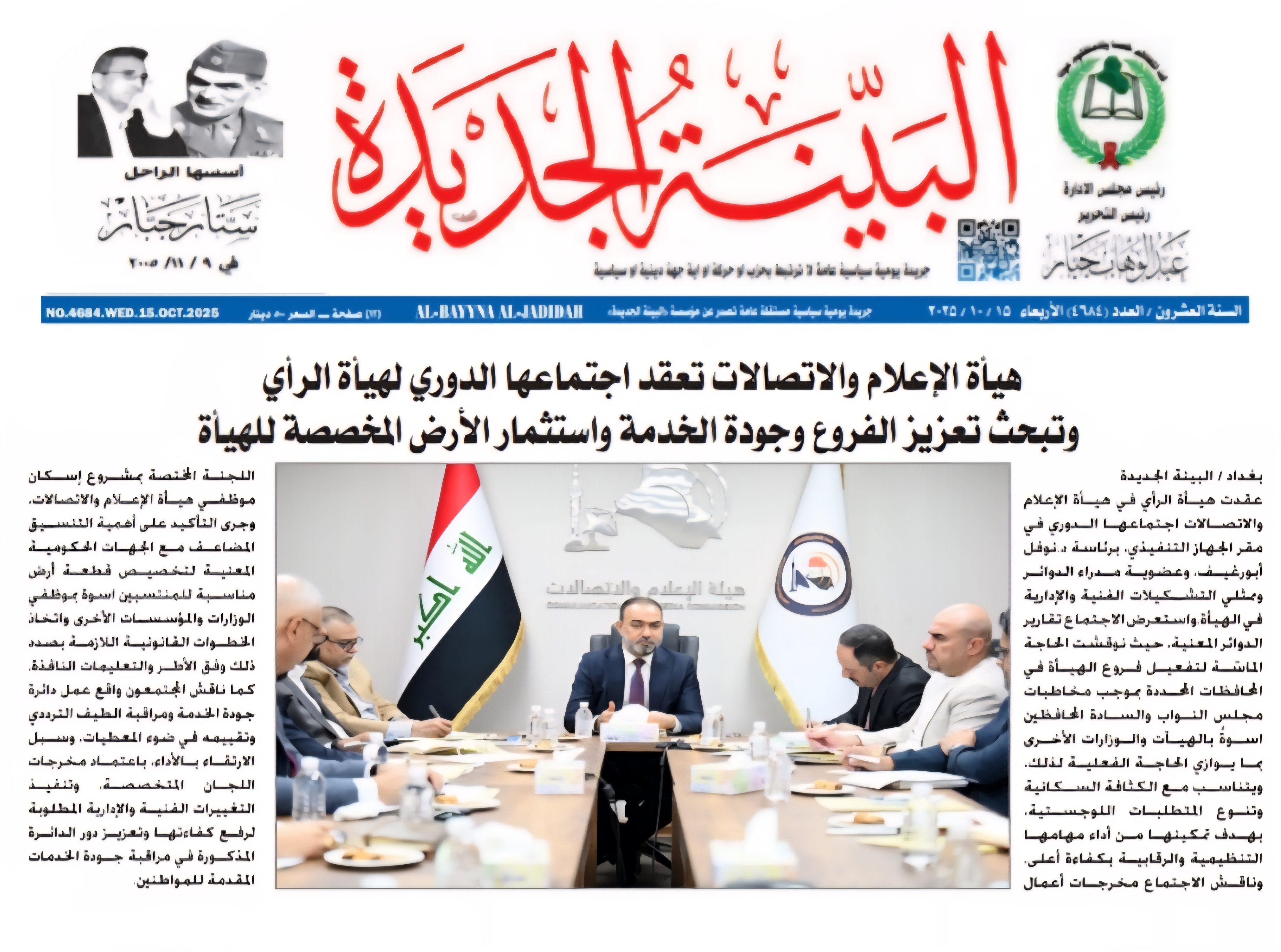 صحيفة البينة .. هيأة الاعلام والاتصالات تعقد اجتماعها الدوري لهيأة الرأي