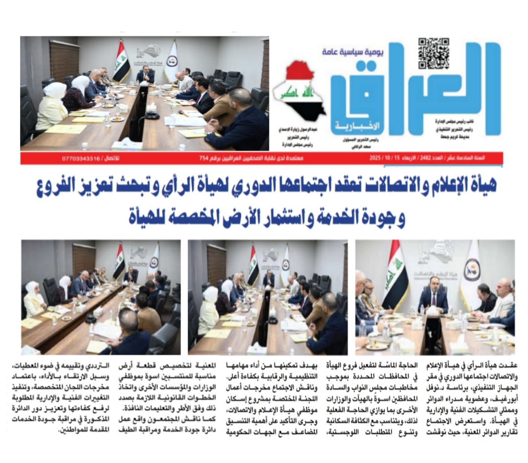 صحيفة العراق الاخبارية .. هيأة الاعلام والاتصالات تعقد اجتماعها الدوري لهيأة الرأي