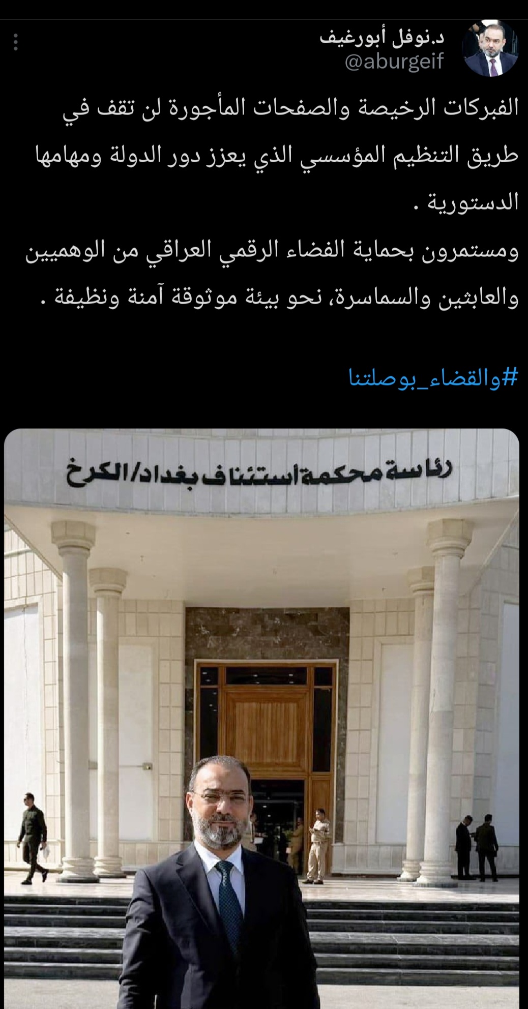 ابورغيف من أمام محكمة استئناف بغداد / الكرخ :الفبركات الرخيصة والصفحات المأجورة لن تقف في طريق التنظيم المؤسسي