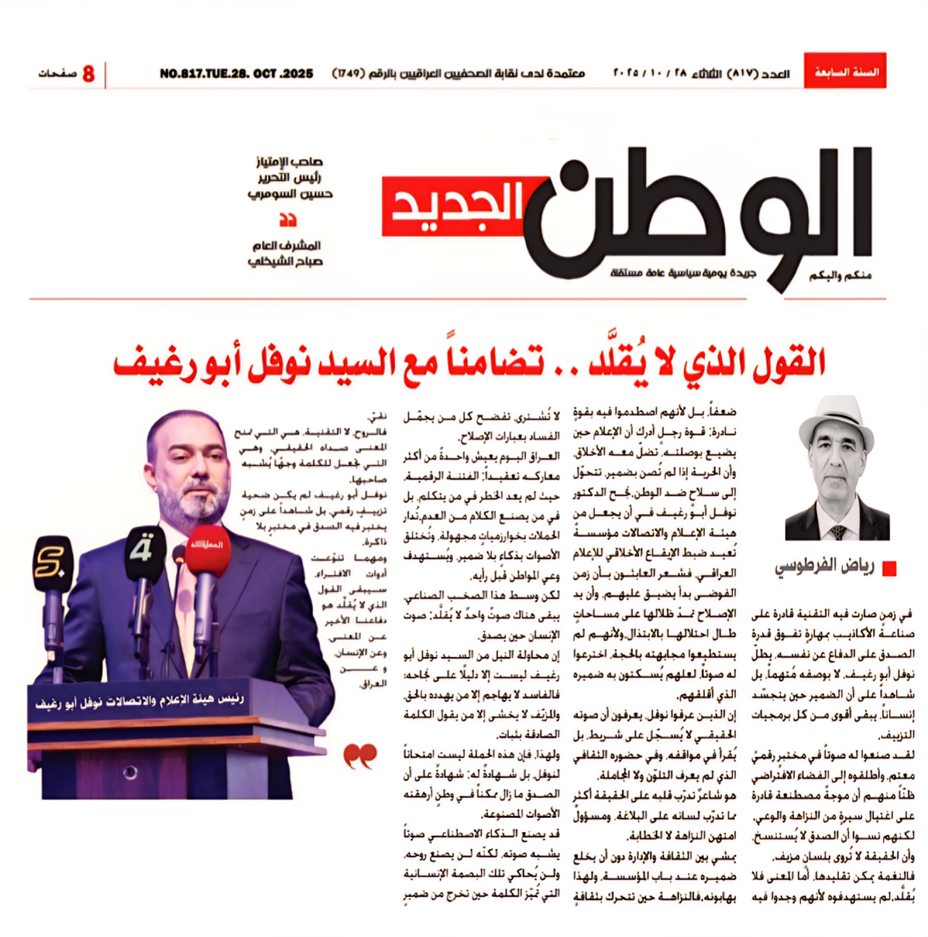 صحيفة الوطن .. القول الذي لا يقلد .. تضاماً مع السيد نوفل