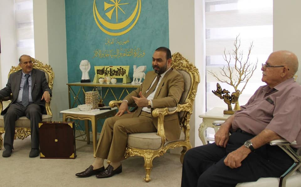 جاء ذلك خلال استقبال وكيل وزارة الثقافة والسياحة والآثار الدكتور نوفل ابو رغيف لرئيس اتحاد الناشرين د.عبد الوهاب الراضي والأستاذ صباح صادق في مكتبه بمقر الوزارة ، شاكراً التفاتة اتحاد الناشرين لهذه المبادرة الكريمة وتفاعله مع وزارة الثقافة ومع الناشرين العراقيين والعرب والاجانب بشكل ملحوظ ، مشيداً بالنجاح الذي شهده معرض بغداد الدولي للكتاب في دورته ال(22) لهذا العام ، مجدداً باسم الوزارة ونيابة عن وزير الثقافة تبريكه واعتزازه بنجاح هذا المنجز النوعي الوطني الذي حقق نقلةً نوعيةً في المشهد العام بعد الانقطاع القسري الذي فرضته ظروف الجائحة مشيداً بالاقبال الجماهيري المضاعف والتنظيم النوعي الذي أكد دورَ النخب الفكريةِ والثقافيةِ في العراق لافتاً الى اهمية الحضور الهائل للعناوين المعرفية والفكرية الجديدة التي ملأت اروقة المعرض وصالاته ممايدلل على استثمار العقول العربية عموما والعراقية خصوصا لفترة الحظر الصحي في تقديم جهود فكريةٍ مهمة تتحدى الظروف الاستثنائية المعروفة .