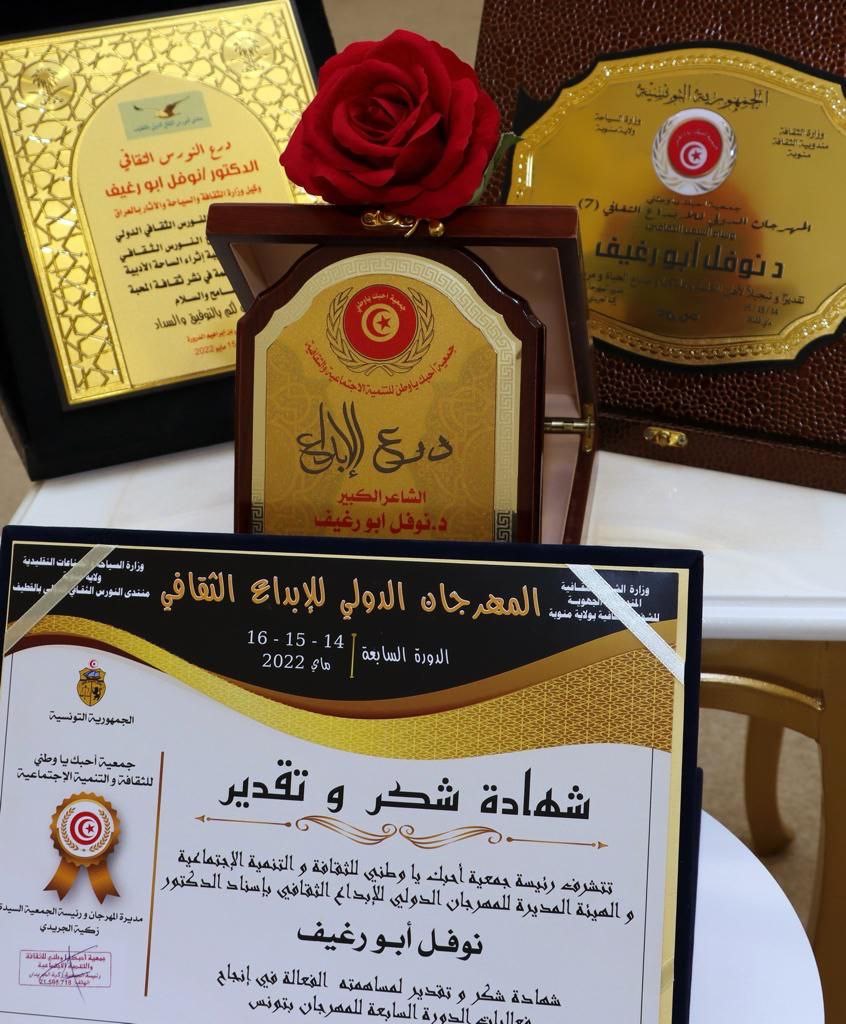 احتفاءً بضيف الشرف الدكتور نوفل ابورغيف في مهرجان الأيام الرومانية ومهرجان الابداع العربي في تونس الخضراء..